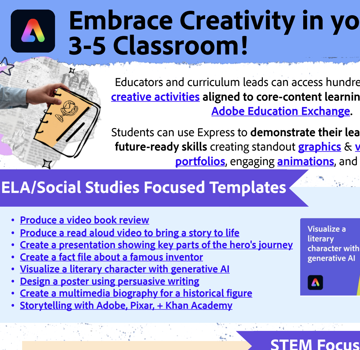 GRADE 3-6 RESOURCES · GRADE 3-6 RESOURCES · GRADE 3-6 RESOURCES · Click on the resources below to discover lesson plans, templates, and creative project ideas you can implement in your grade 3-6 classroom right away! Literacy: Character Design Community/Culture: Classroom Norms Poster Graphic Organizer AI Book Cover Redesign More Grades 3-6 Resources