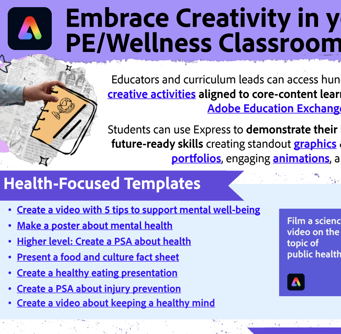 HEALTH AND PE RESOURCES · HEALTH AND PE RESOURCES · HEALTH AND PE RESOURCES · Click on the resources below to discover lesson plans, templates, and creative project ideas you can implement in your health, PE, and wellness classes right away!